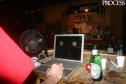 This is what it looks like behind the DJ booth. Exciting stuff huh?